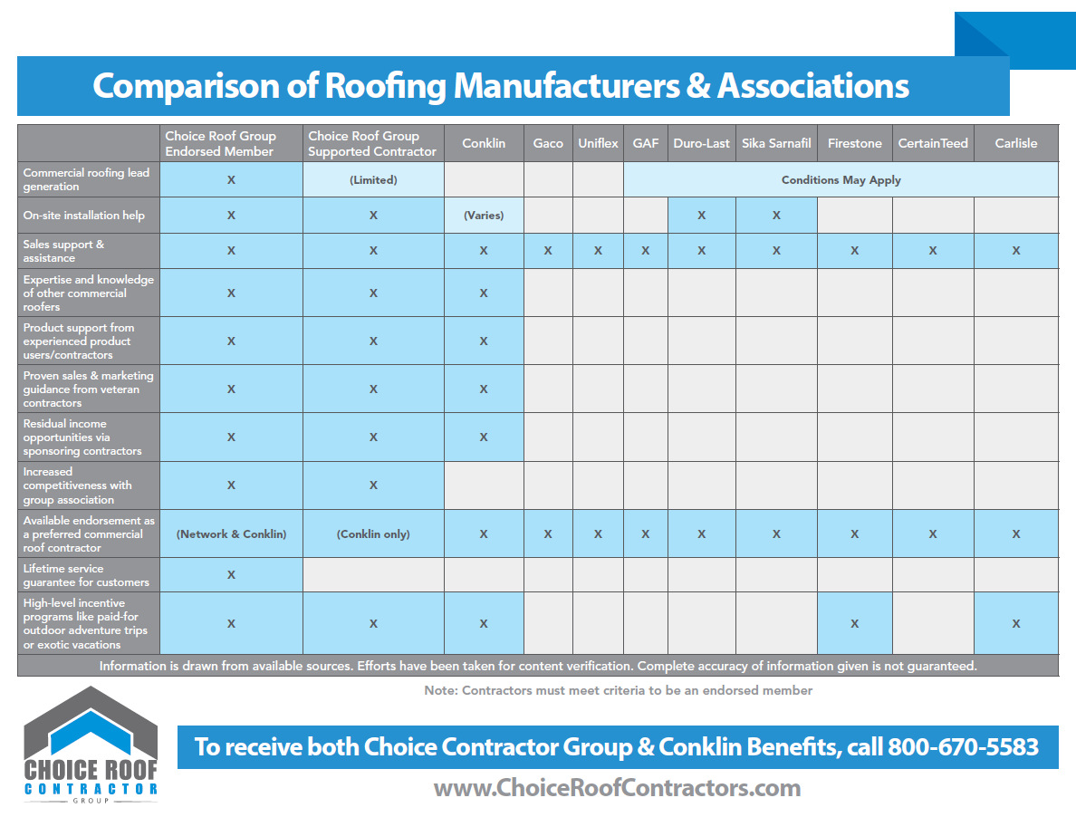 Conklin vs GacoAt Choice Roof Contractor Group, we offer a unique opportunity in the $5.3 billion commercial roofing industry. Via our relationship with Conklin, commercial roofing salespeople and installers have the ability to earn a lifelong, residual income with no cap. Because our contractor network is expanding its nationwide footprint, our group is looking for the following partners: